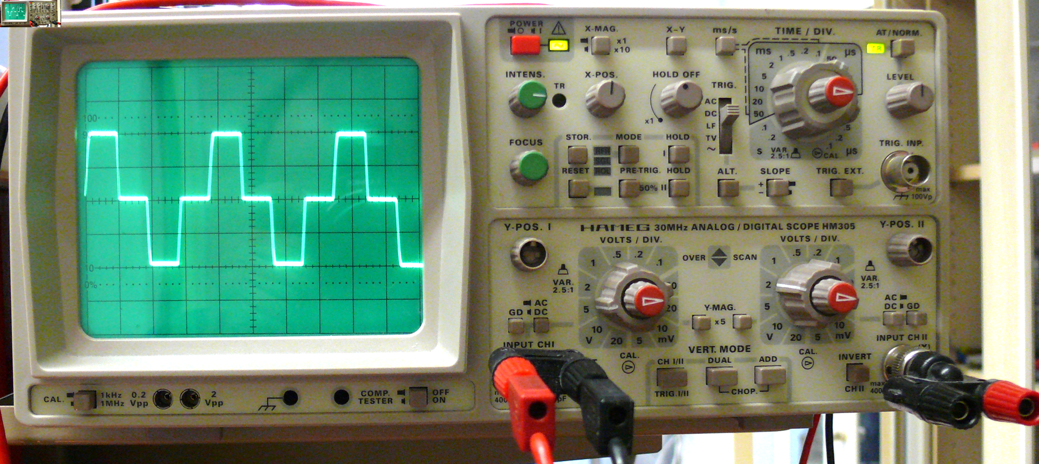 Darstellung der aus einer Gleichspannung erzeugten Wechselspannung mit Hilfe eines Oszilloskops: