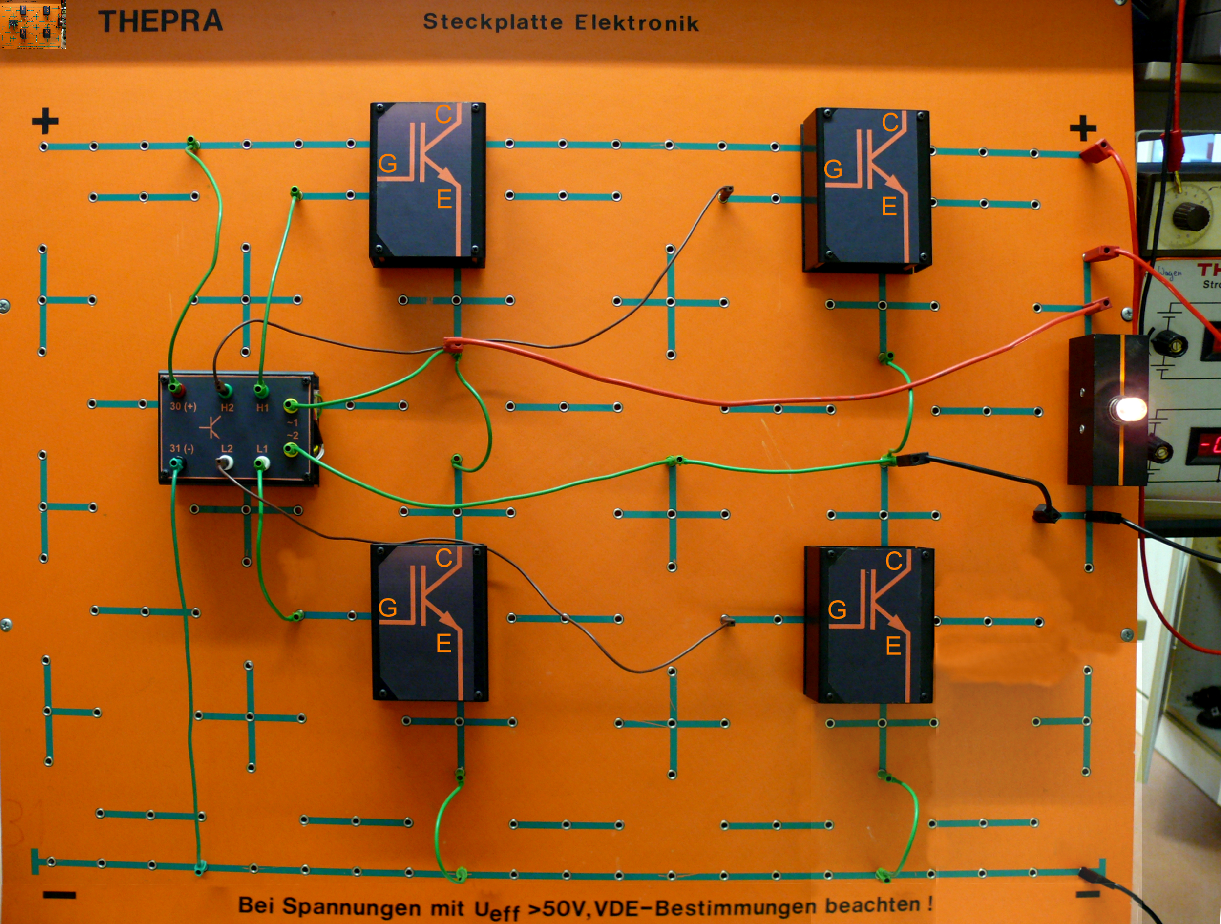 Entwicklung eines elektronischen Steck-Bausteine-Satzes für Schüler-Versuche zum Thema Wechselrichter für ein bestehendes Grundlagen-Versuchs-Systems des Unternehmens THEPRA Didactic GmbH in Fellbach.