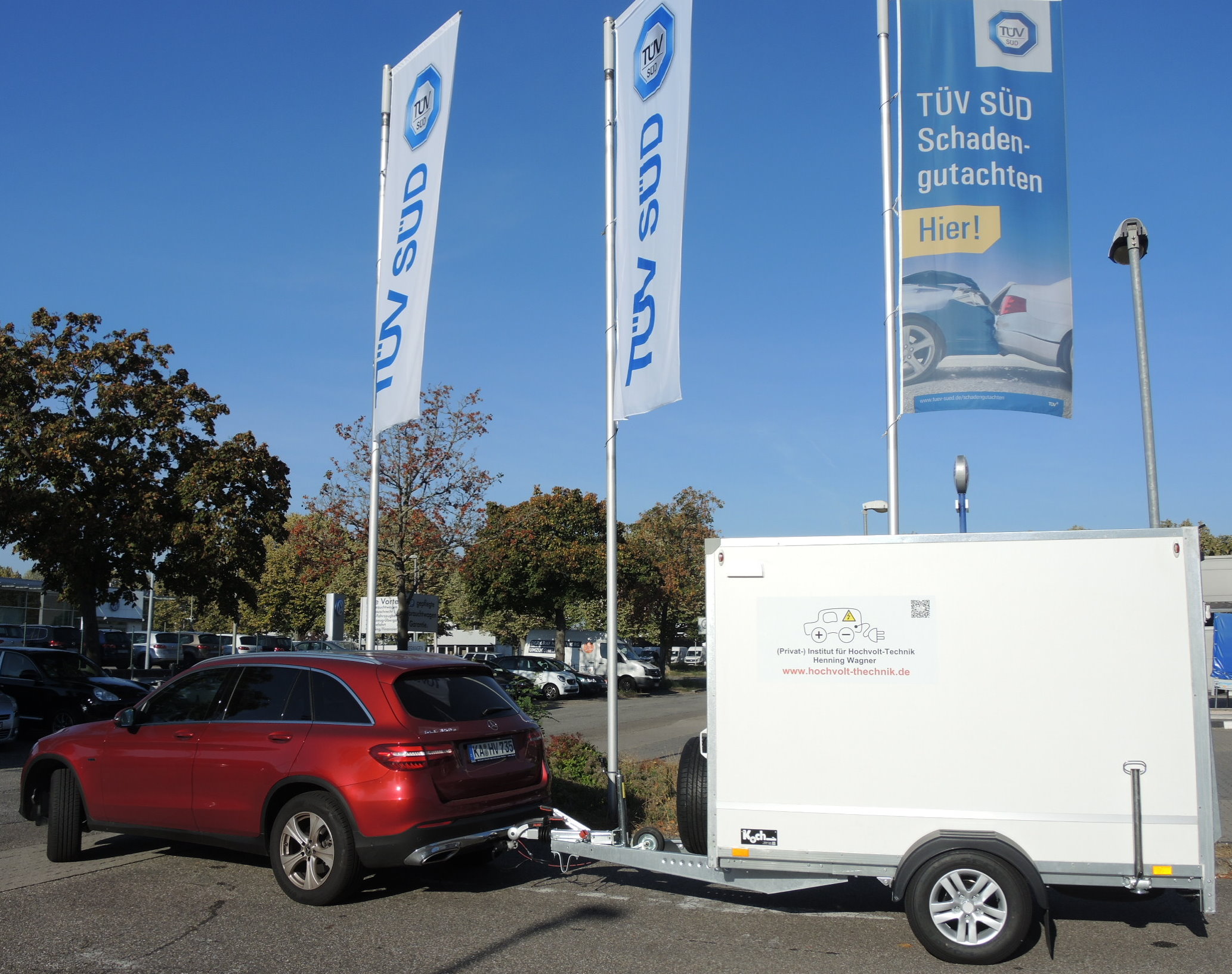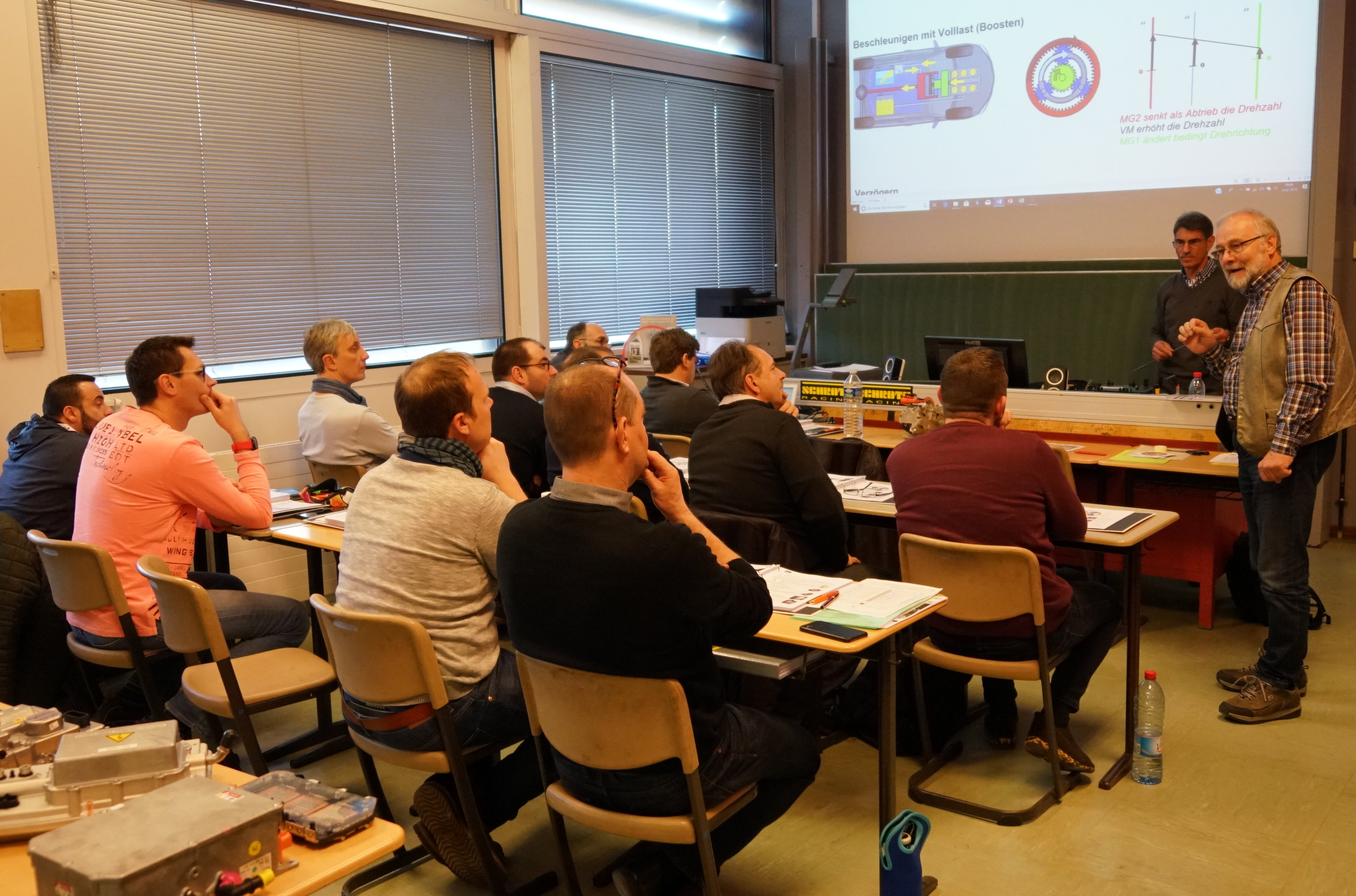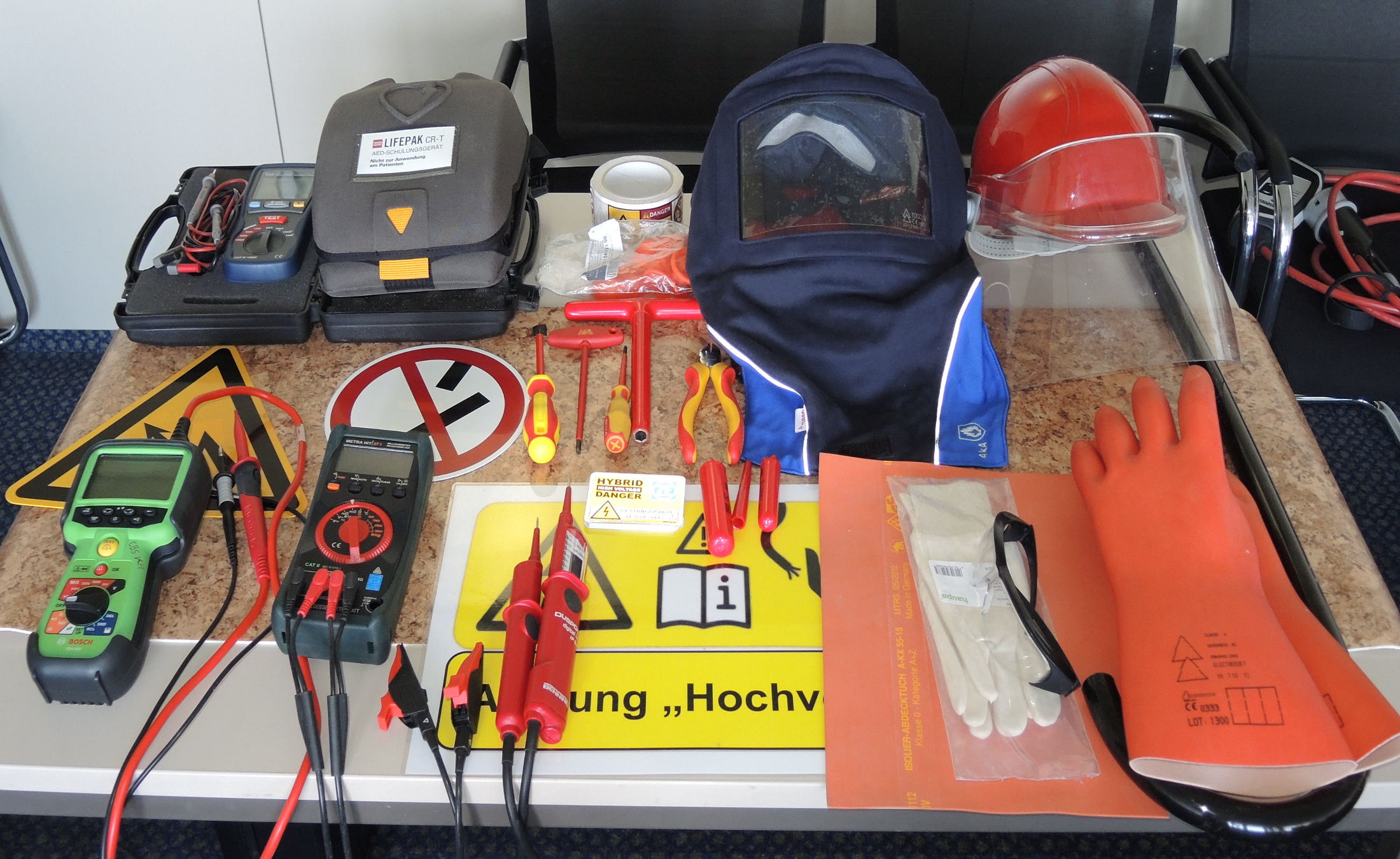 Hierzu steht eine ausgezeichnete Ausstattung an Lehrmitteln, Originalteilen, Schnitt-Modellen, HV-Messgeräten, Schutzausstattungen, Präsentationen und mindestens ein HV-Fahrzeug (Mercedes GLC 300de Plug-In Hybrid mit Werkstatt-Tester XENTRY Diagnostic) zur Verfügung. Die Lehrmittel-Ausstattung ist für den Transport zu Inhouse-Schulungen in einem speziell dafür eingerichteten Anhänger untergebracht.