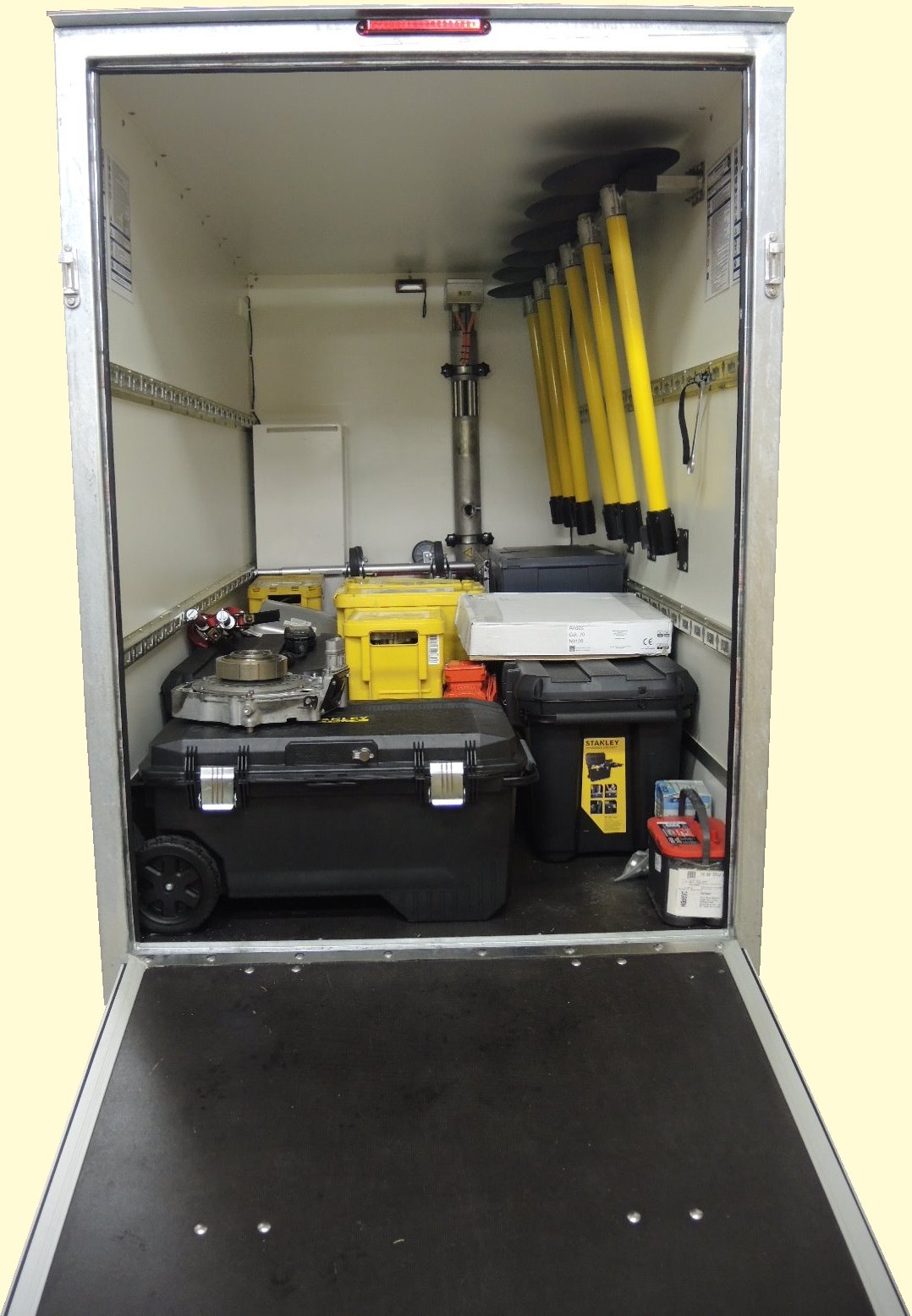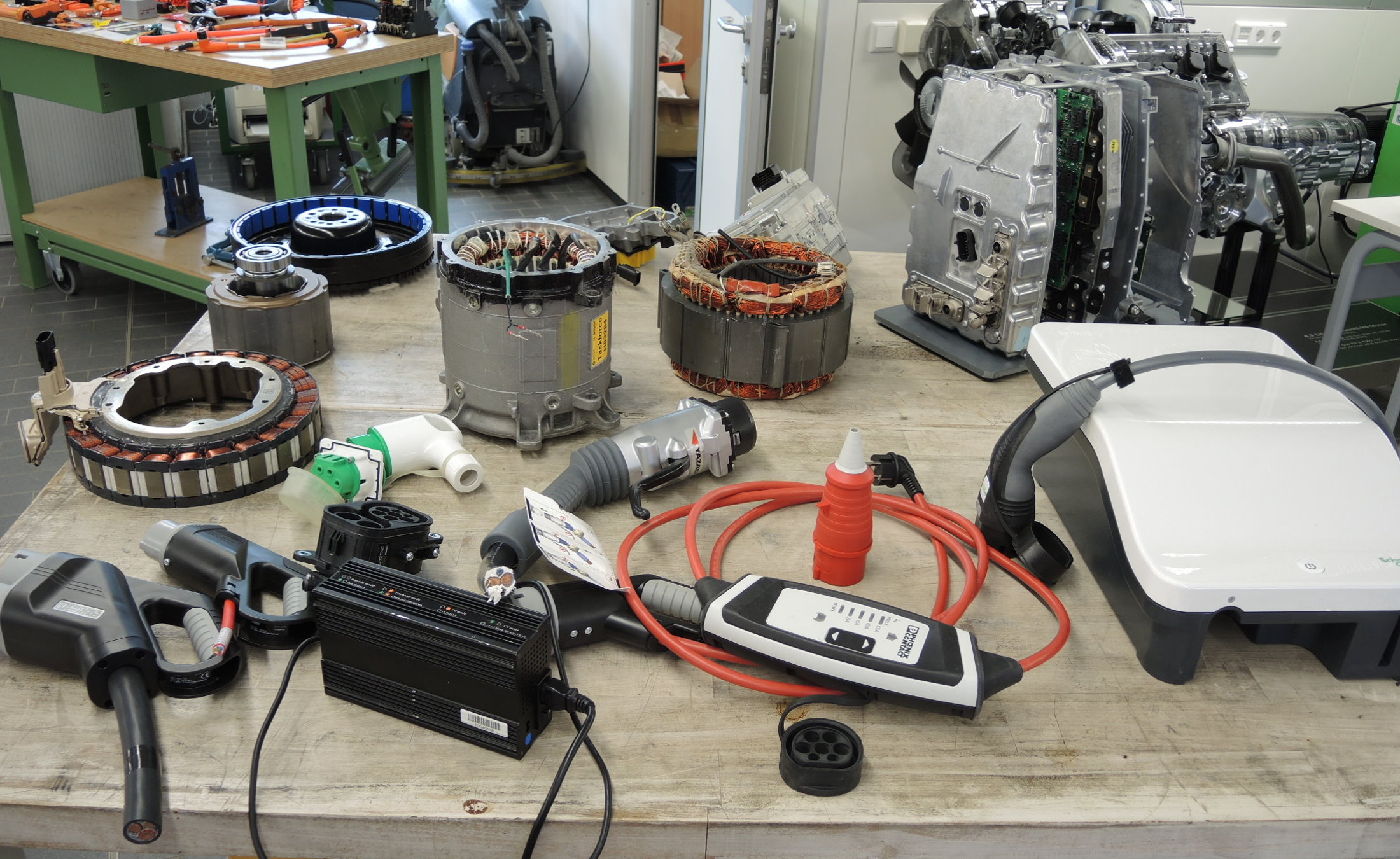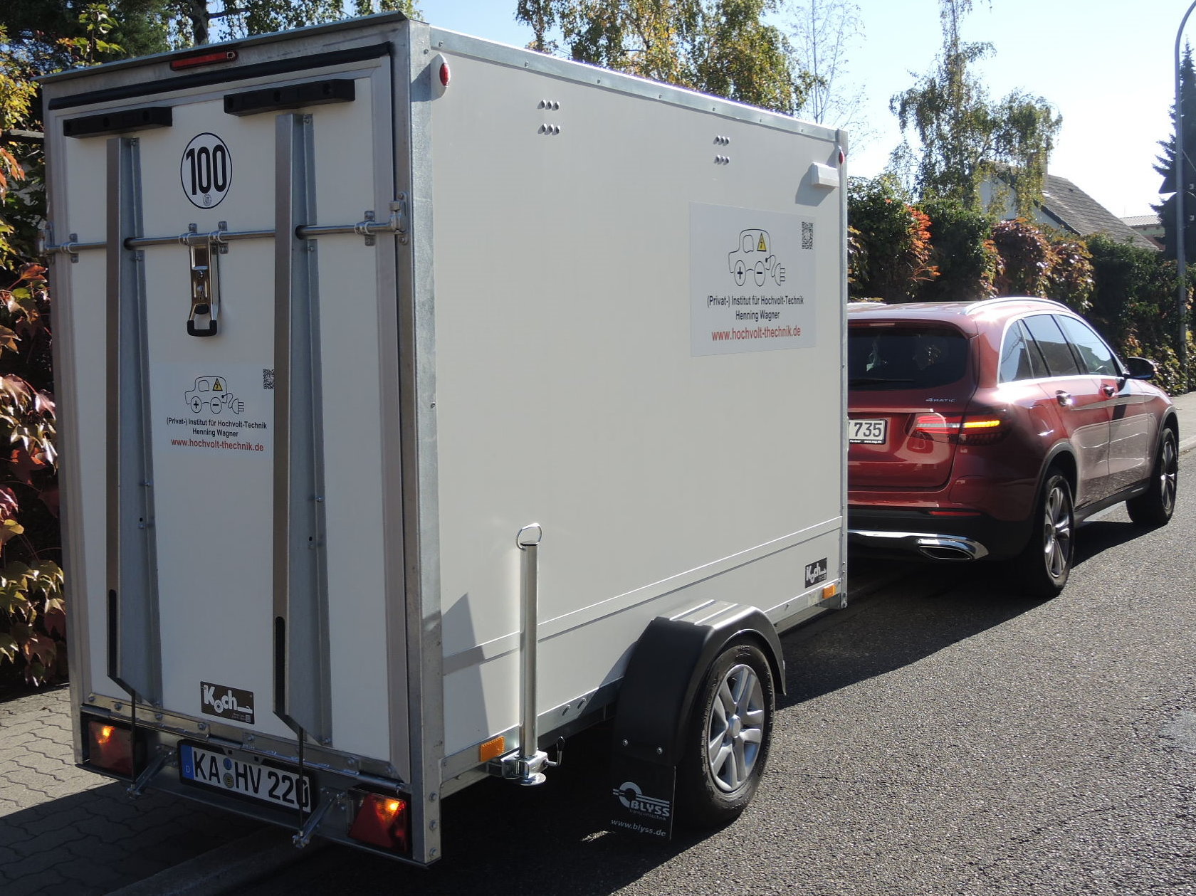 Hierzu steht eine ausgezeichnete Ausstattung an Lehrmitteln, Originalteilen, Schnitt-Modellen, HV-Messgeräten, Schutzausstattungen, Präsentationen und mindestens ein HV-Fahrzeug (Mercedes GLC 300de Plug-In Hybrid mit Werkstatt-Tester XENTRY Diagnostic) zur Verfügung. Die Lehrmittel-Ausstattung ist für den Transport zu Inhouse-Schulungen in einem speziell dafür eingerichteten Anhänger untergebracht.