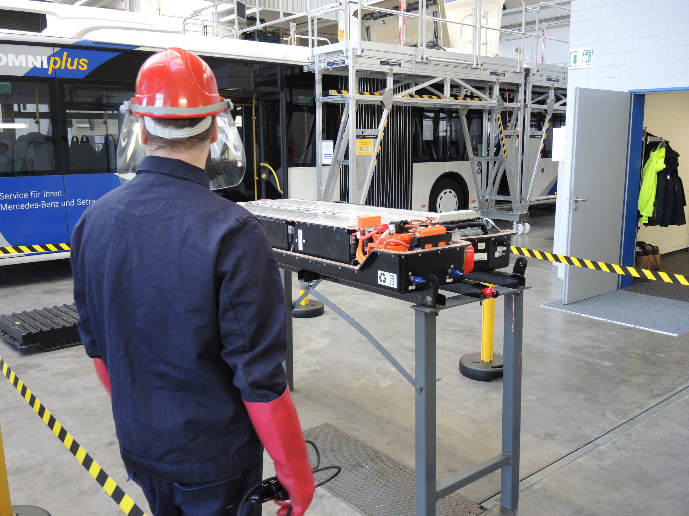 Stufe 3 S/E Fachkundige Person für Arbeiten an unter Spannung stehenden HV-Systemen (einschließlich Arbeiten an nicht eigensicheren (Unfall-)Fahrzeugen (bisher AuS)): 24 h Bei Stufe 3 wird u.a. das Messen und Arbeiten unter HV-Spannung unter Einhaltung aller vorgeschriebenen Schutzmaßnahmen z. B. an HV-Speichern (z.B. Wechsel von Schützen, Zellverbindern oder Batterie-Zellen) geübt.