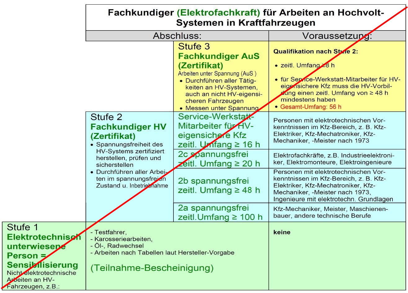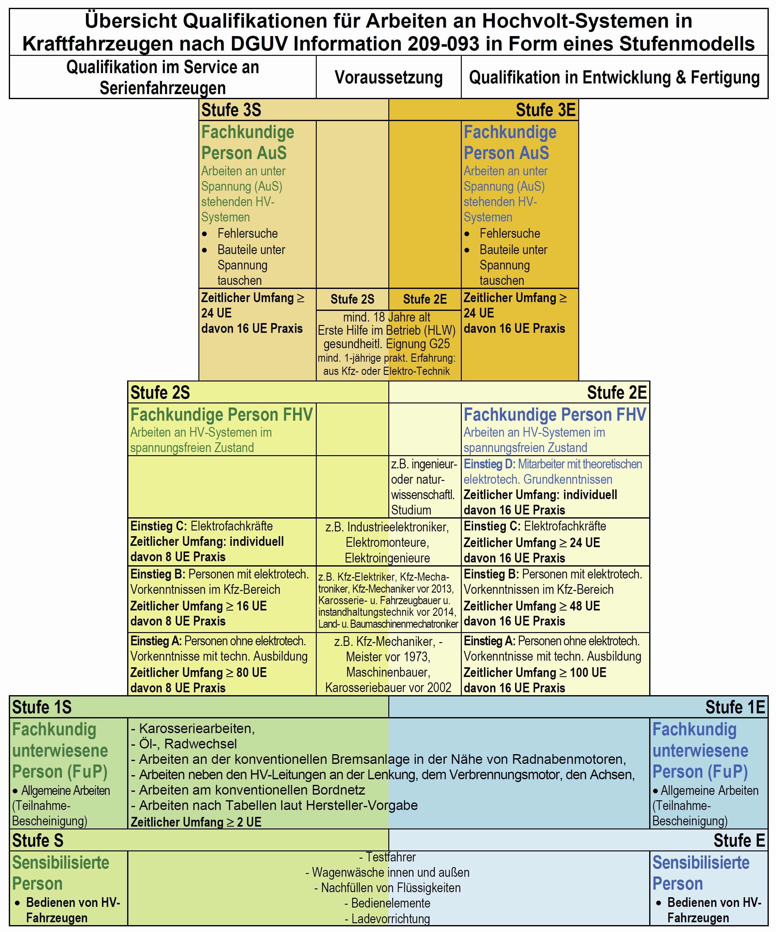 Stufe 2 S/E Stufe 2 (Fachkundig Person Hochvolt(FHV) für Arbeiten an Hochvolt-Systemen im Kraftfahrzeug/ Elektrofachkraft für eingeschränkte Tätigkeiten je nach Personenkreis und Arbeitsbereich: